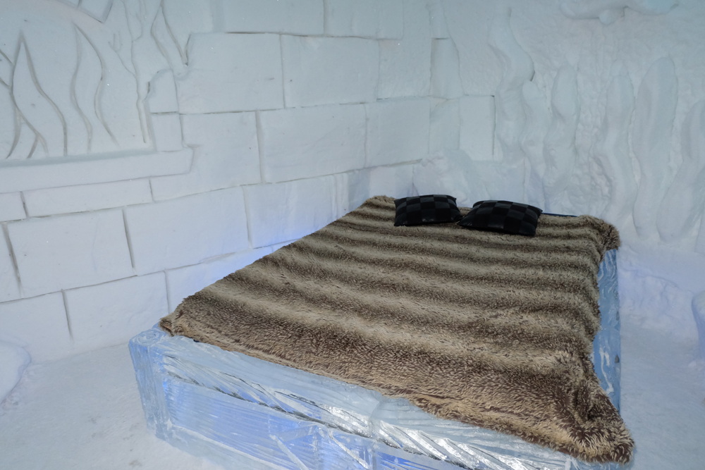 The bed you’ll sleep in is made of ice, however does include a regular mattress. Your sleeping linens—sleeping bag, pillow, sheet—will be provided once it’s time to go to bed and your room temperature will stay between -3 and -5 Celsius. They even showed us a special way you’re supposed to get into your sleeping bag! But don’t worry, they provide mandatory training sessions for anyone brave enough to spend the night if you’re worried you won’t know what to do.
