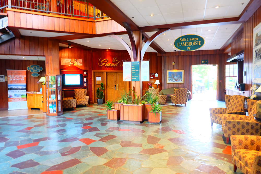 As we pulled up to the grand gates of the hotel, I couldn’t believe the gorgeous surroundings combined with the rustic, and relaxing decor of the hotel. The location is in close proximity to the city of Montreal, yet you feel like you are far enough away to get a relaxing vacation. Plus, the hotel is close to the little town of Sainte-Adèle which is probably the cutest town with victorian looking buildings filled with boutiques and delicious restaurants. You can ski in and out of the resort, and still feel like you’re away from a city, yet still having the ability and freedom to head to town for an evening out.