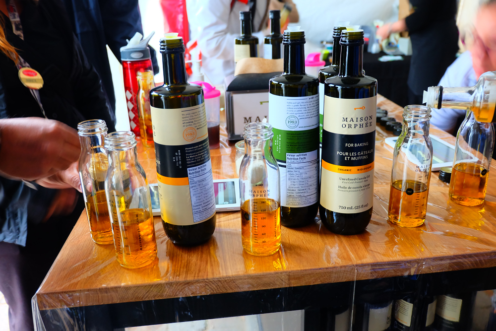 After our rib lunch, we headed to explore all the stalls in the pedestrian village. This festival brings in so many exhibitors. Booths ranged from tasty samples of gourmet food, products, drinks (alcoholic and non-alcoholic) and food-related supplies for sale (like kitchen supplies from Després Laporte). You could also find different demonstrations and presentations throughout the festival, like a candy sushi workshop, a hot fudge demonstration, and several lessons with famous chefs (note: many of these are in French only). One of the highlights for me was stopping by the Maison Orphée salad bar where we had the chance to make our own salad dressings to bring home!